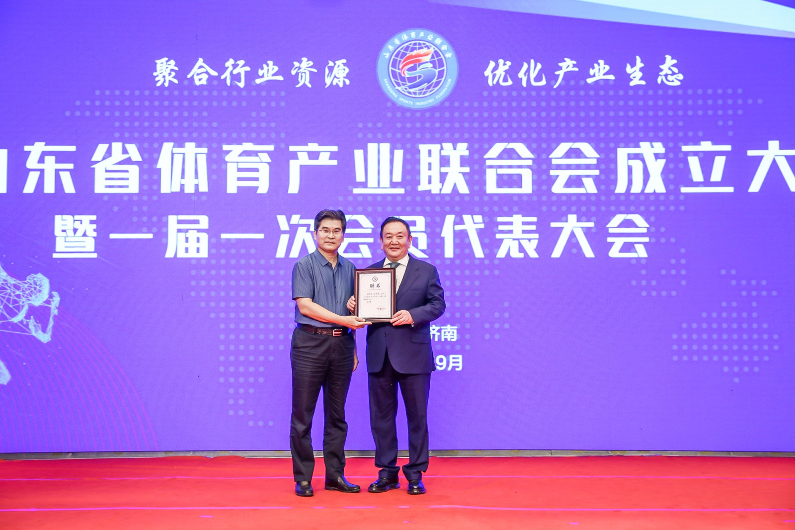 会上,审议通过山东省体育产业联合会章程、选举办法和会费管理办法,表决选举第一届理事、监事,选举产生联合会第一届会长、副会长、秘书长、监事长、副监事长。米兰·(milan)体育产业集团董事长卞志良当选为首届理事会会长,山东省体育产业发展服务中心主任翟培建当选为首届理事会副会长兼秘书长。